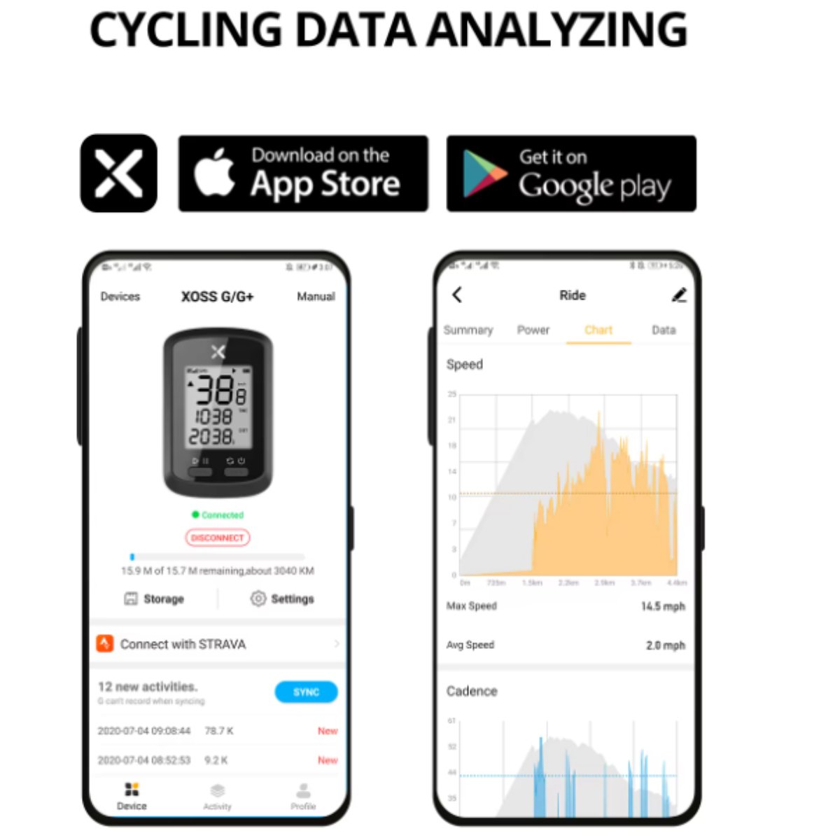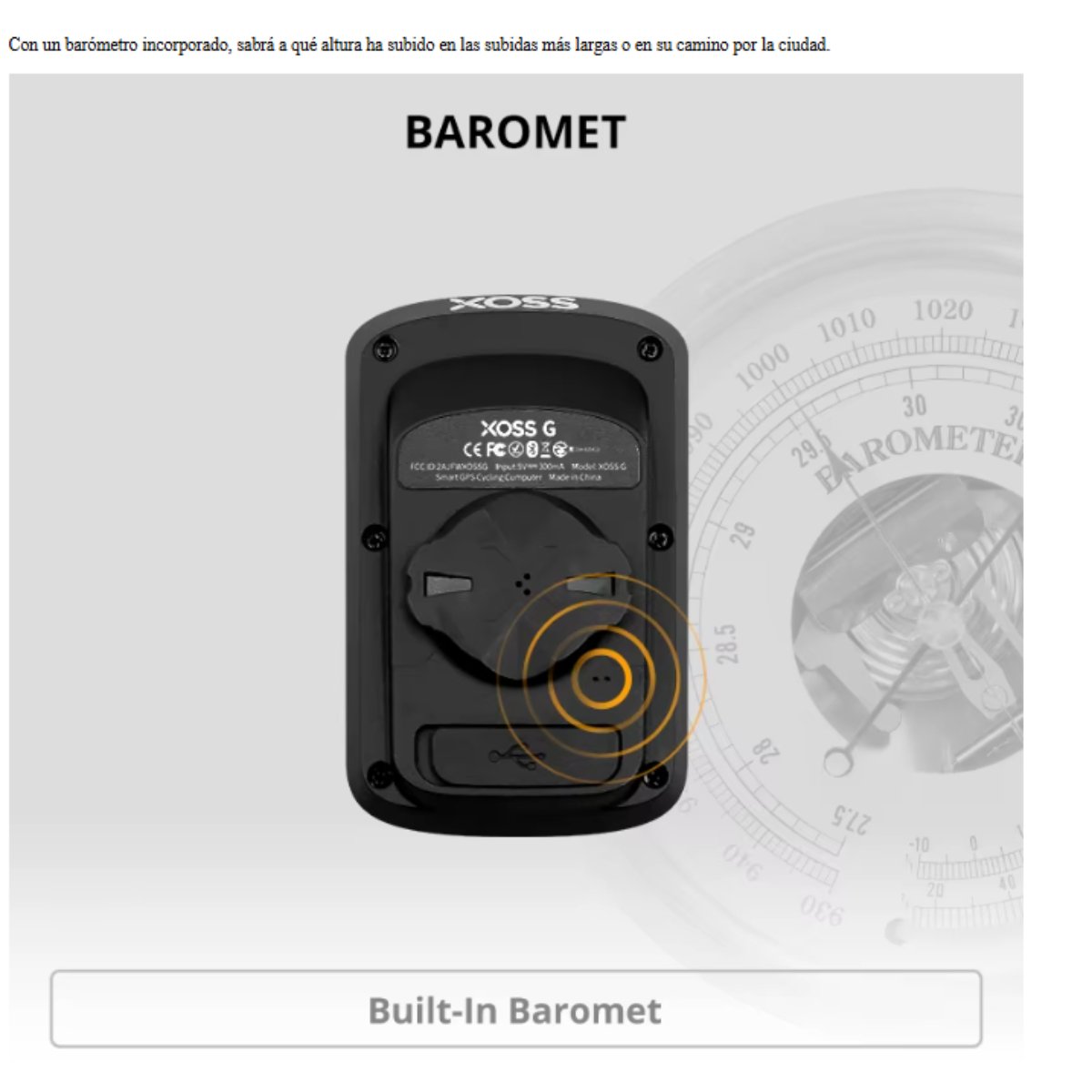 Disponible para dispositivo periférico El ordenador inalámbrico para bicicleta XOSS G plus + admite el trabajo con un monitor de frecuencia cardíaca y un dispositivo sensor de cadencia, que presenta datos de conducción más profesionales. (El Monitor de frecuencia cardíaca y el sensor de cadencia necesitan compra por separado)