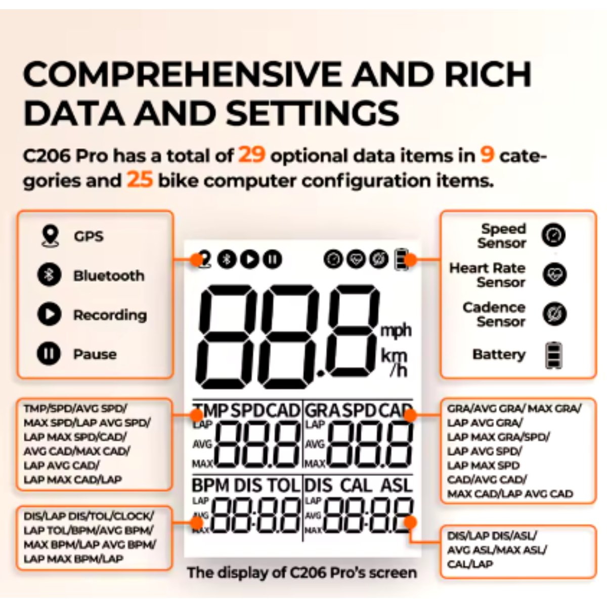 Entre sus principales beneficios, destaca la conectividad Bluetooth y ANT+, lo que permite sincronización con aplicaciones como Strava y TrainingPeaks para un mejor seguimiento de la actividad. Su resistencia al agua IPX6 lo hace ideal para cualquier clima, y su interfaz intuitiva facilita la navegación y configuración. Con el Magene C206 Pro, los ciclistas pueden mejorar su rendimiento con datos precisos y personalizables, asegurando una experiencia óptima en cada salida. 🚴♂️📡